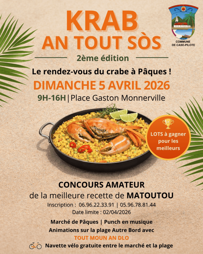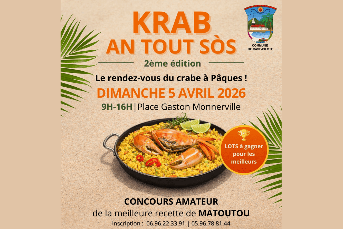 La 2ème édition du Krab An Tout Sòs est de retour pour célébrer la tradition du matoutou de crabe à l’occasion de Pâques !